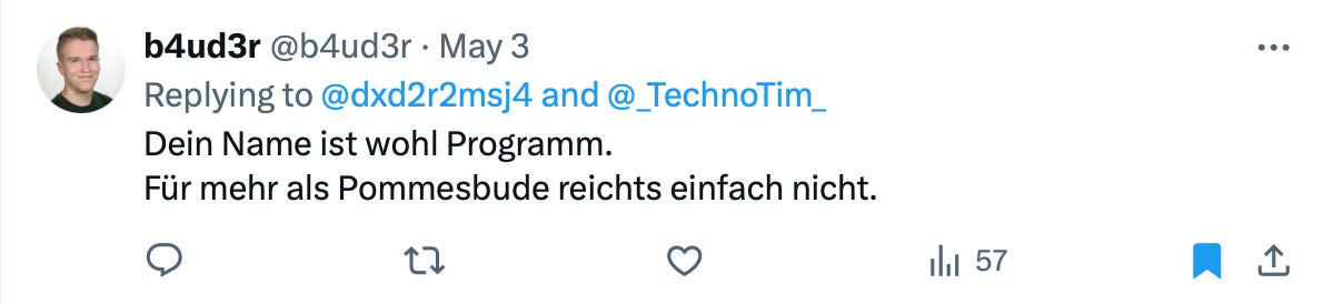 Look at this tweet from someone who claimed that my name says probably much (not positive things) about my investment style. Btw. this guy wrote his bachelor thesis about Tesla.