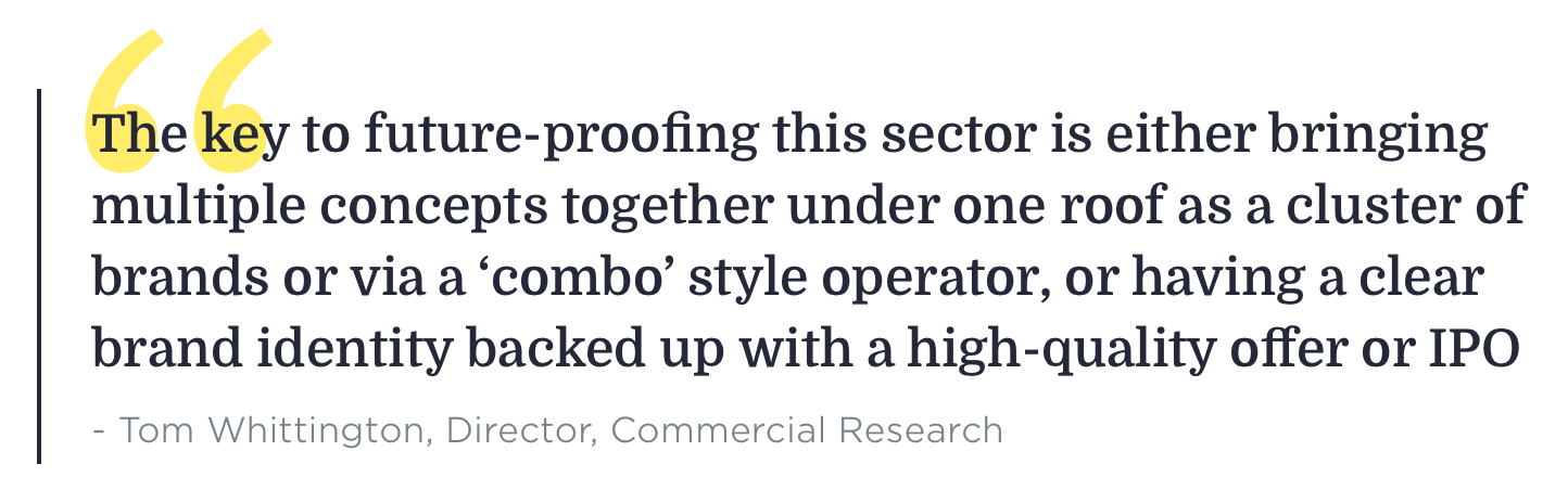 Manchester remains the second largest market, but Birmingham has seen the fastest growth in CS over the past five years, with the city seeing a net influx of 14 operators – a 74% uptick in site openings and with more planned for the Bullring & Grand Central estates in 2024. Liverpool has seen a net increase of nine new operators, with five brands alone in Liverpool One shopping centre, including Junkyard Golf, Gravity Max, Escape Live, Roxy Ballroom and Esports venue, Level Tap, with Flight Club set to join the lineup in 2024. London has seen a smaller proportionate rise in openings at 6%, which is largely due to a lack of affordable opportunities with the right footprint rather than saturation.
