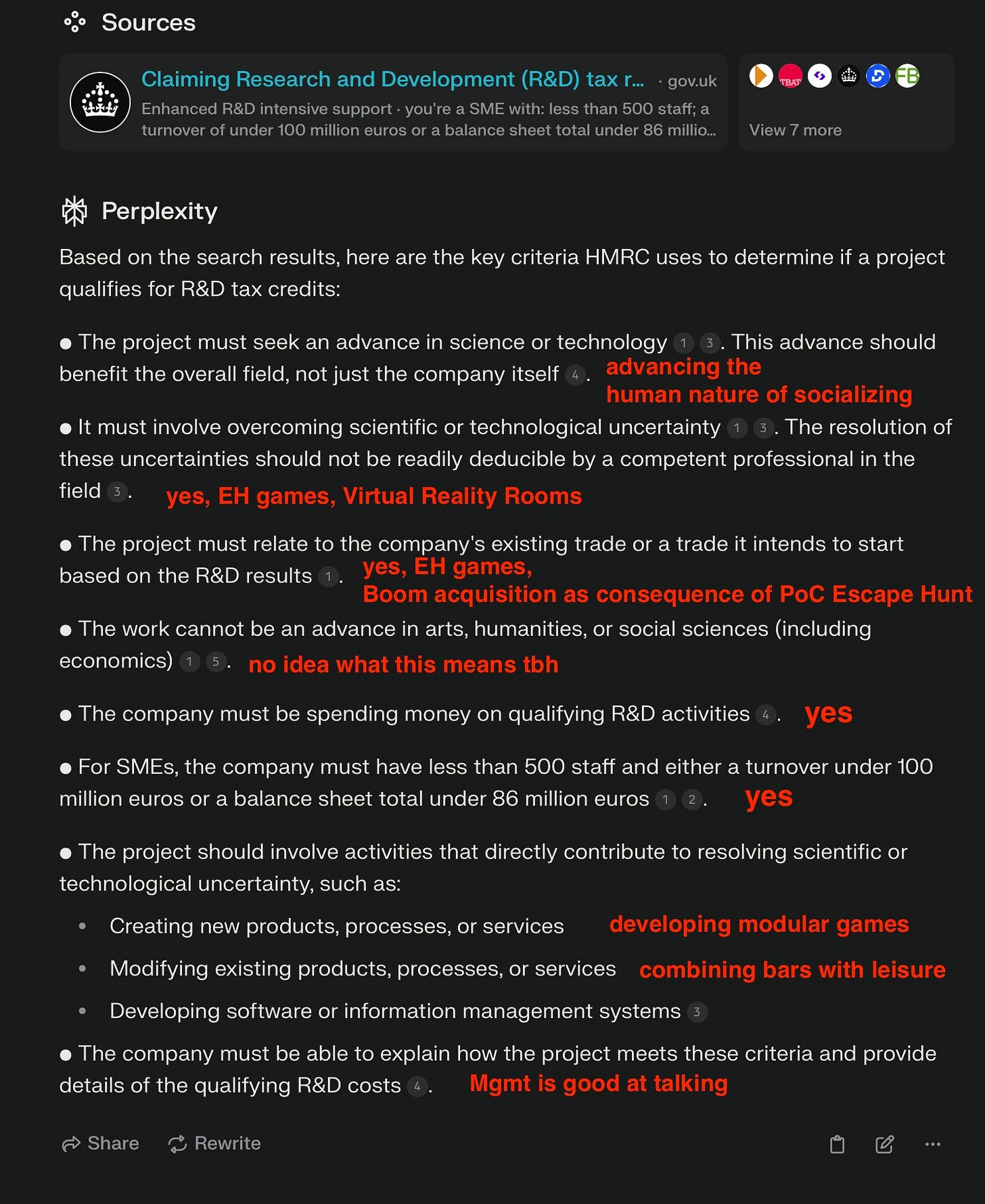 So I thought it would be funny to research the criteria for R&D grants and hand it in for XP Factory to demonstrate how easy it probably is to make R&D grants applicable to your business model. For sure I don’t know if HMRC would have accepted this but to be honest I wouldn’t be surprised if yes.